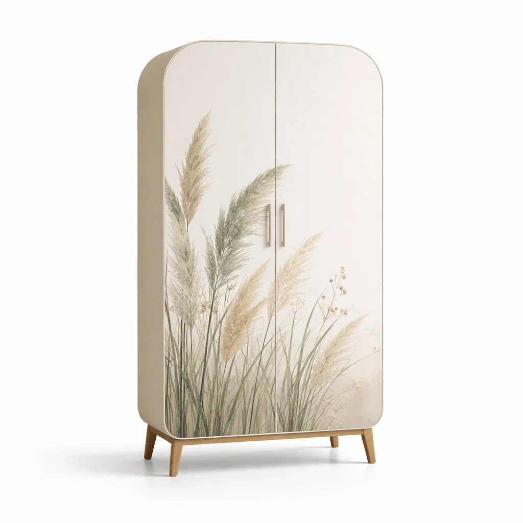 Kleiderschrank mdf weiß mit naturmotiv 200 x 100 x 50 cm