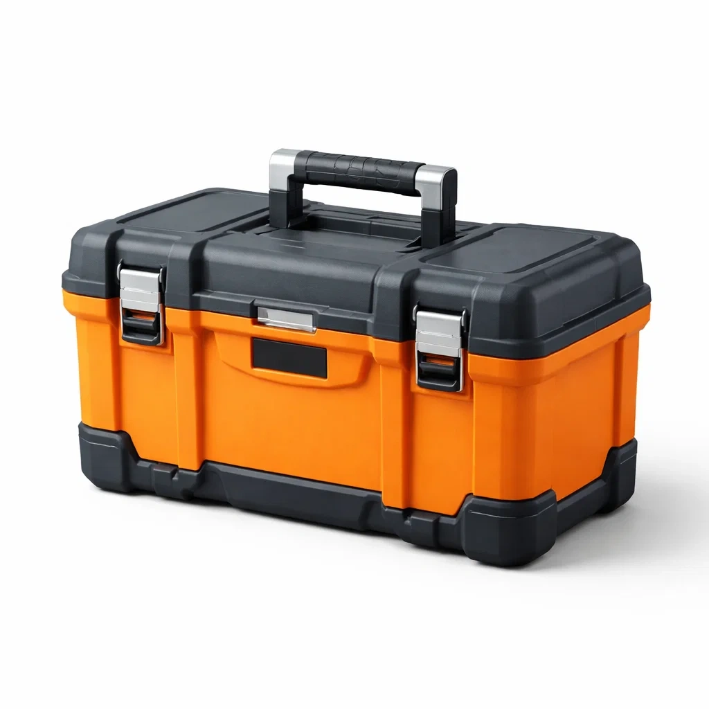 Werkzeugkoffer kunststoff orange schwarz mit metallverschlüssen
